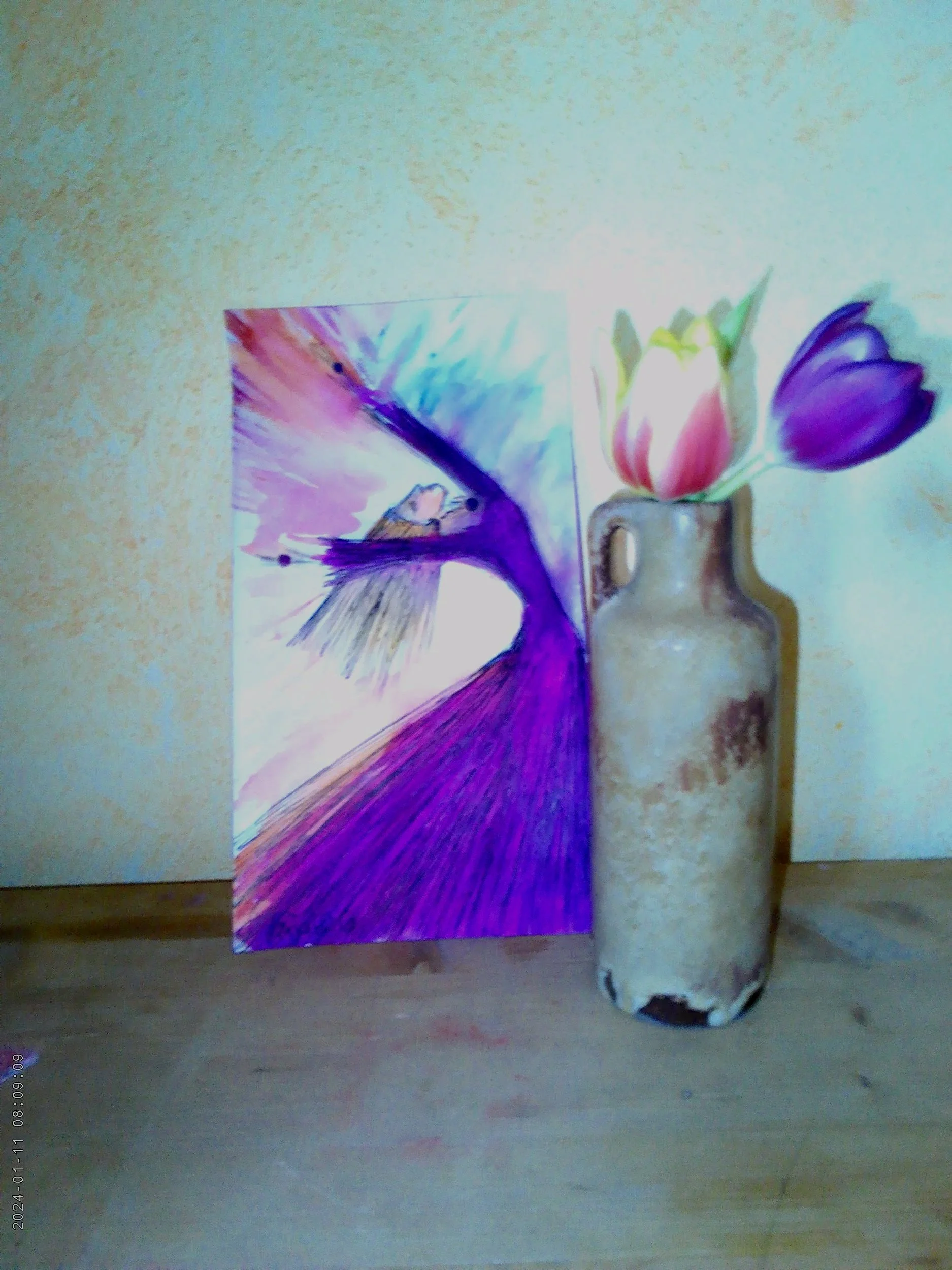 Auszeit IV, 30 x 5o cm, Wasserfarben mit Fineliner auf Leinwandkarton, 125,-