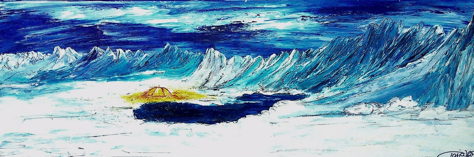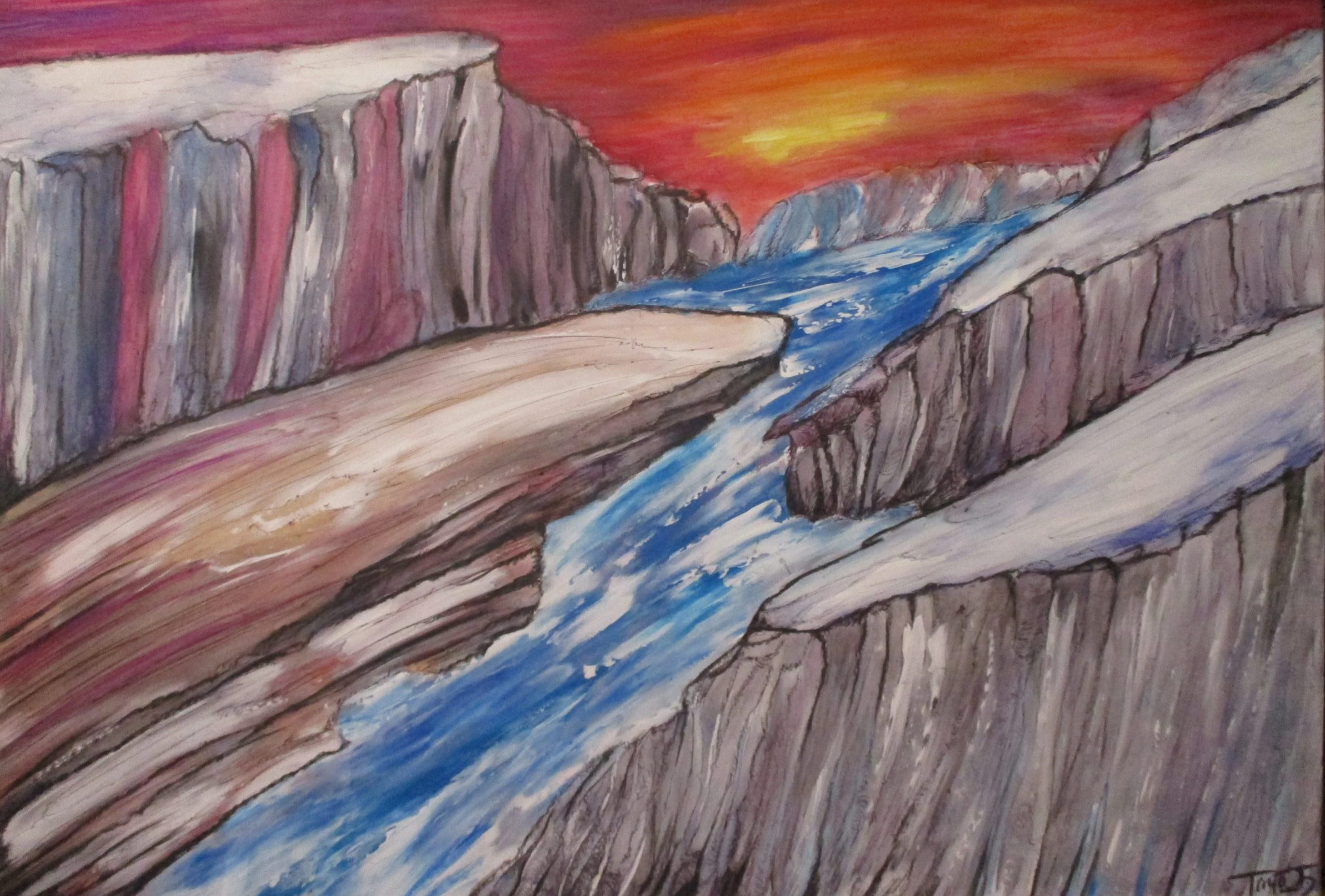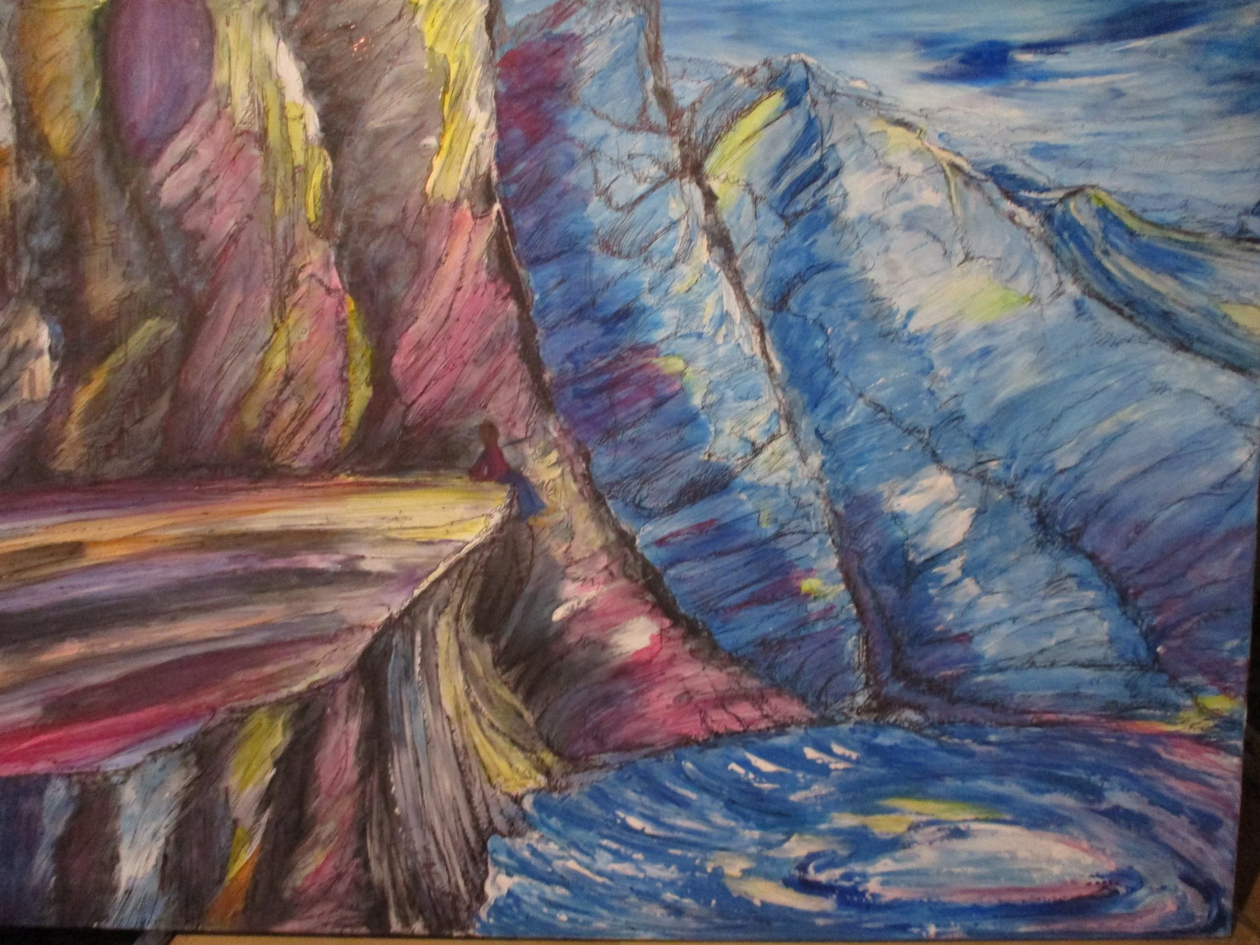 Trollzunge in Norwegen oder auch STROMAUFWÄRTS geht es auch , Acryl auf Leinwand, 100 x 150 cm, 200, -