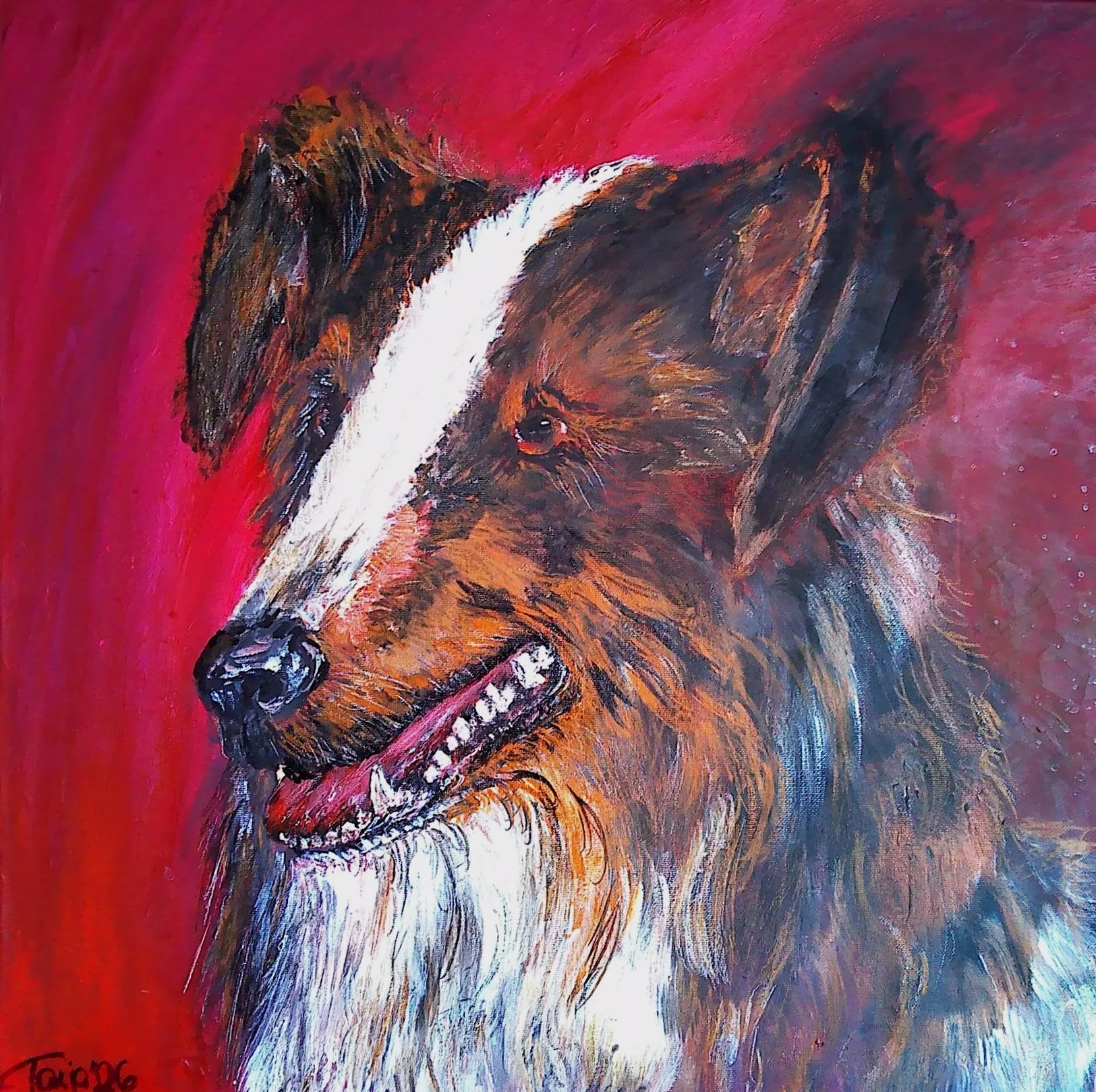 Collie Mix, Aquarell und Acryl auf Leinwand, 50 x50 cm, 400,-