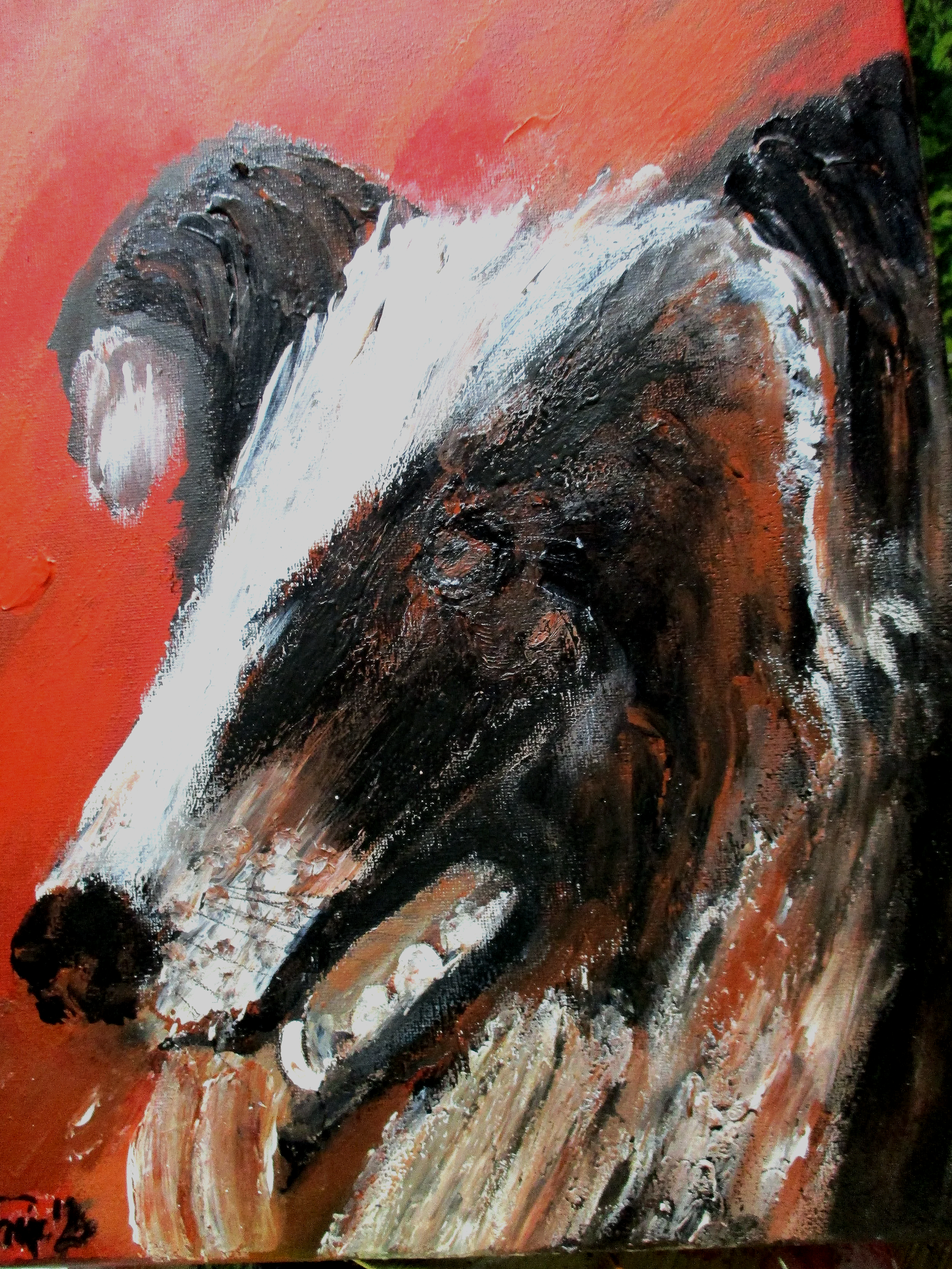 Boarder Colli Mix, Acryl auf Leinwand, 30 x 40 cm. VERKAUFT