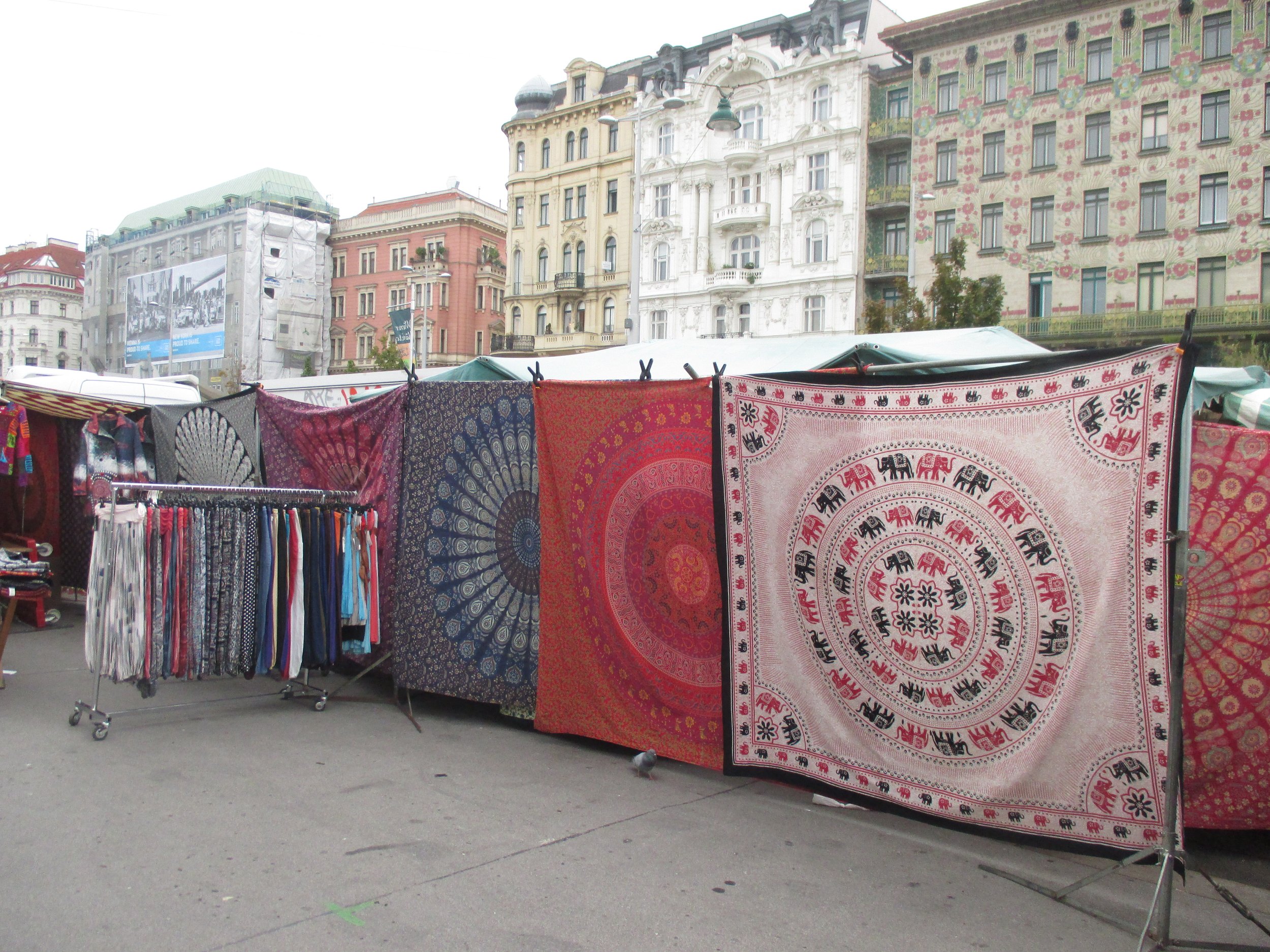 Wien, Naschmarkt, 19,5x24,5 Innenmaß. 27,5x35 cm Außenmaß, Bleistift mit Wasserfarben auf Aquarellpapier mit Passepartout, 160,-