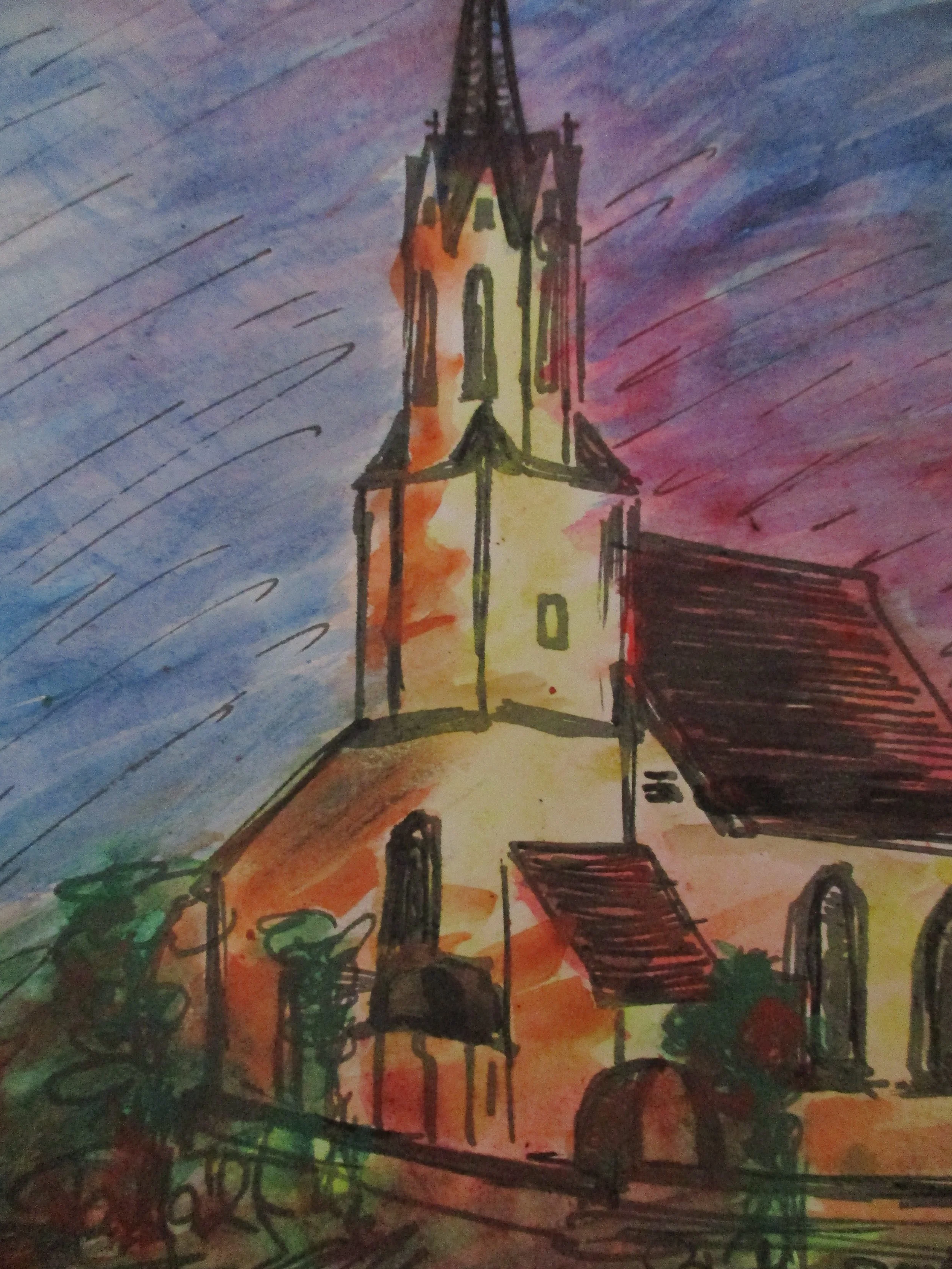 Fürth, 20 x 30cm Innenmaß, 20 x 40 cm Außenmaß, Bleistiftzeichnung mit bisschen Wasserfarbe, auf Aquarellpapier mit Passepartout, 75,-