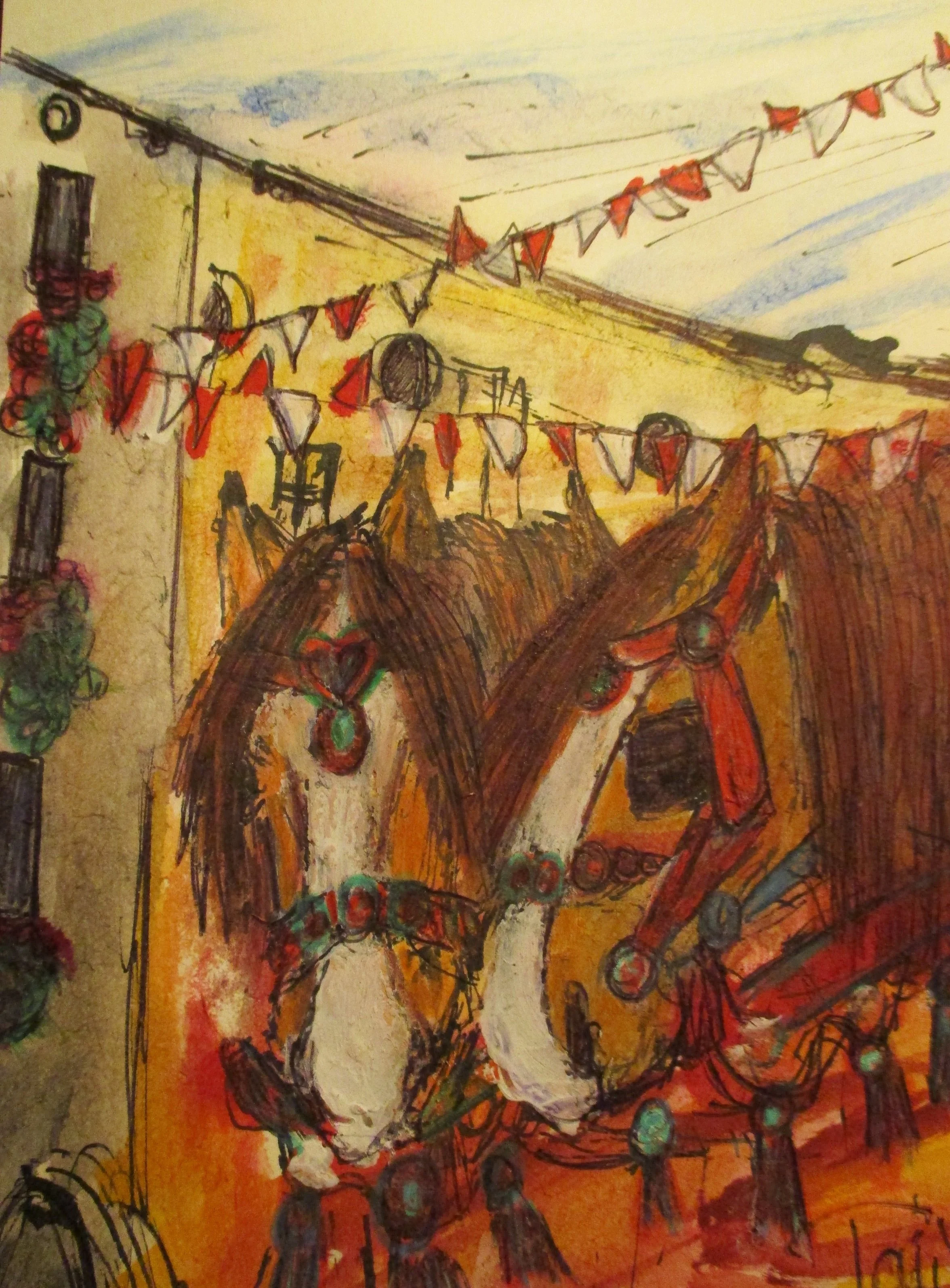 Mühldorf, Festumzug, Volksfest, Bleistift mit Aquarell auf Aquarellpapier, 15 x 20 cm, 95,-