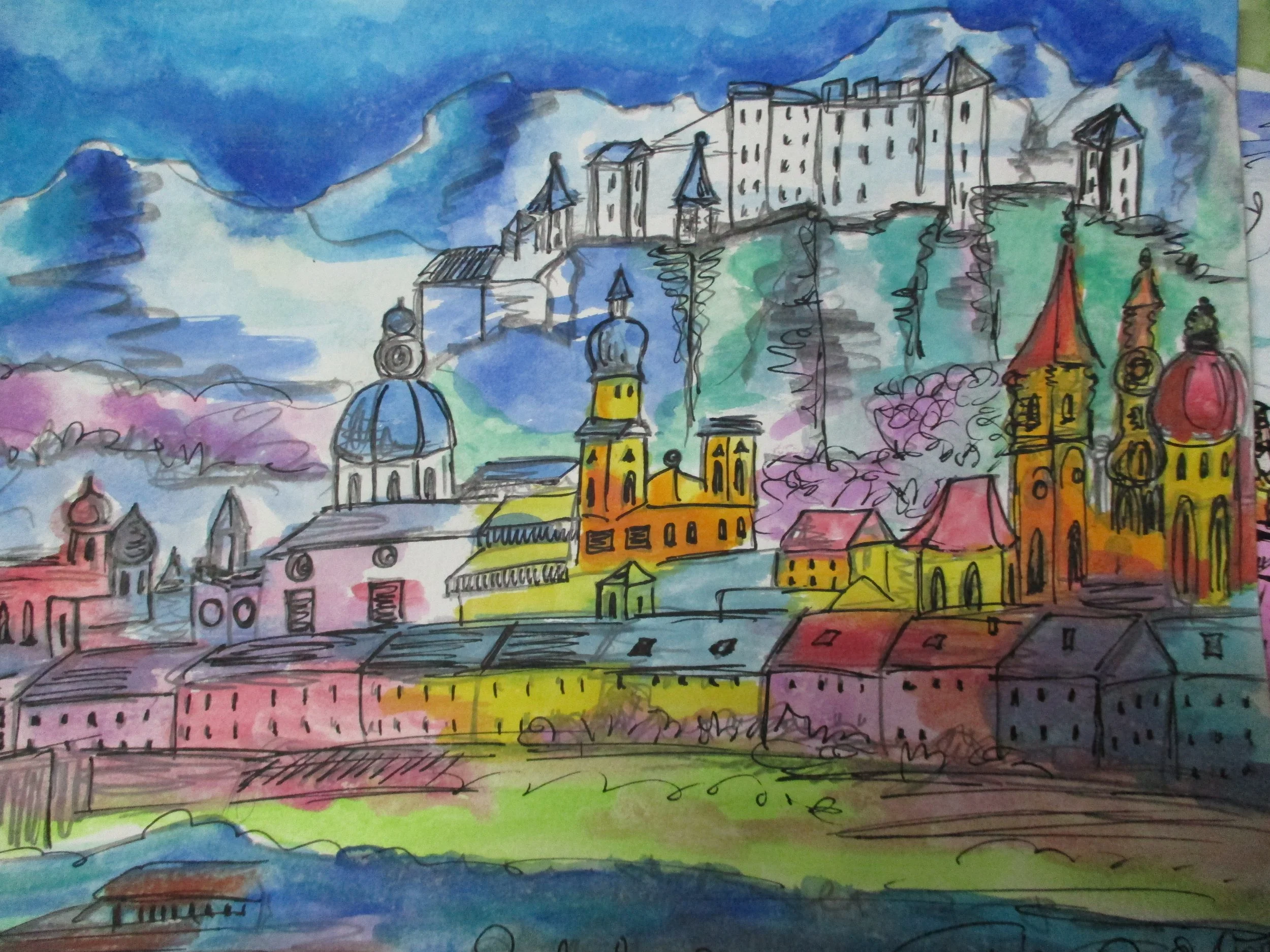 Innsbruck, Tusche mit Aquarell auf Aquarellpapier, 20 x 30 cm, 85,-