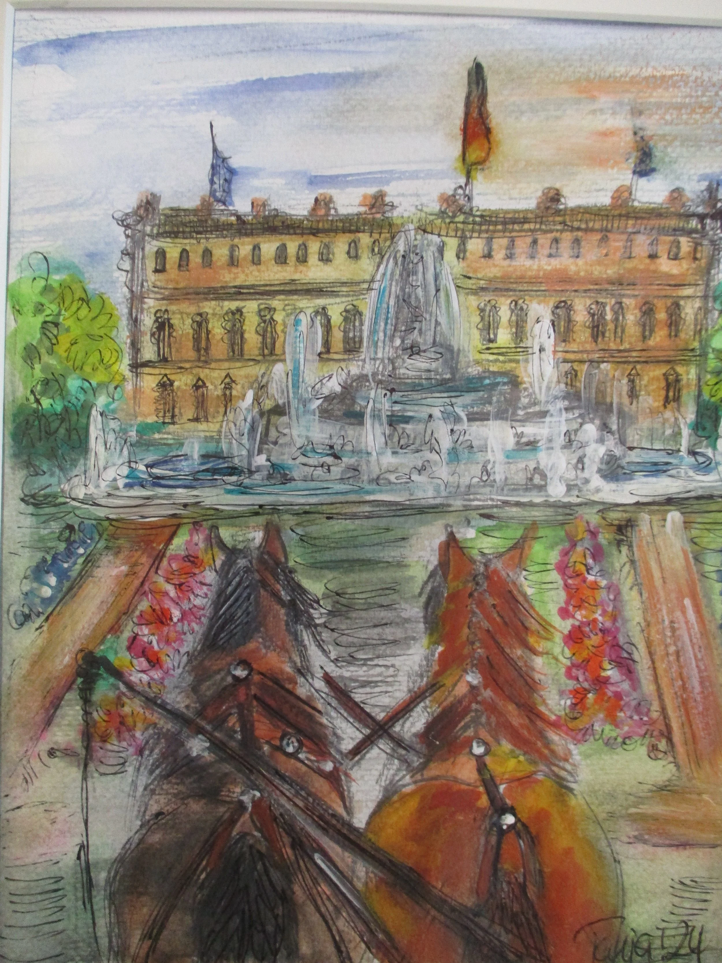 Altötting, 19,5 x 24,5 c Innenmaß, 27,5 x 35 cm Außenmaß, Wasserfarben mit Bleistift auf Aquarellpapier mit Passepartout, 95,-