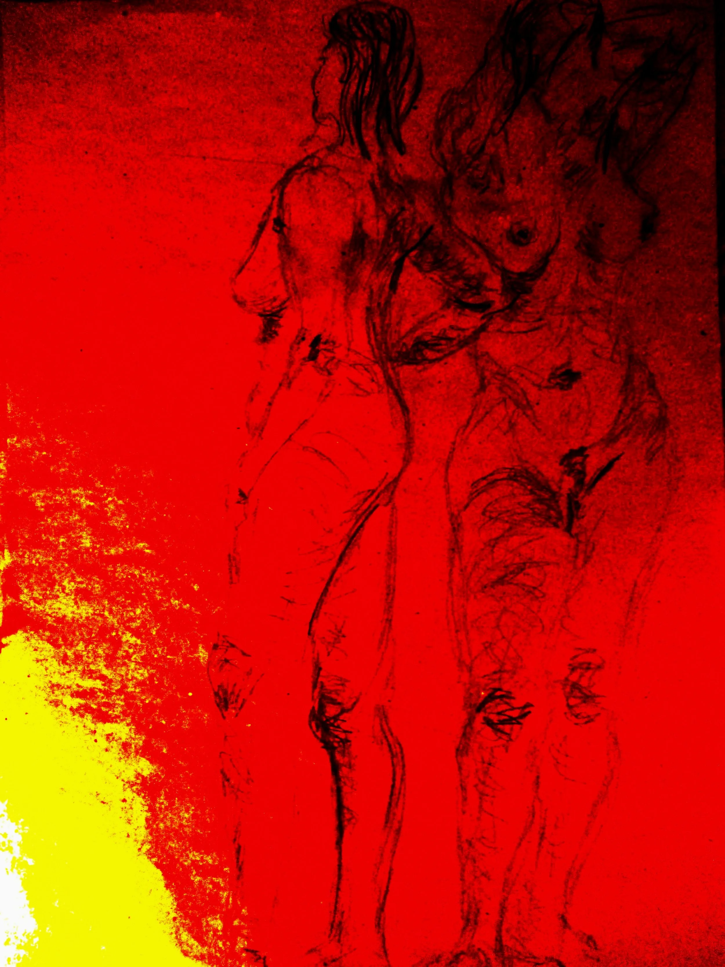 Der Hintergrund dieser drei Damen ist digital bearbeitet - Es ist also eine Mischung aus meinen früheren Zeichenstudien mit Kohle und Bleistift und einem digitalen Spiel von Farbwerten der heutigen Zeit. Auch einmal interessant….