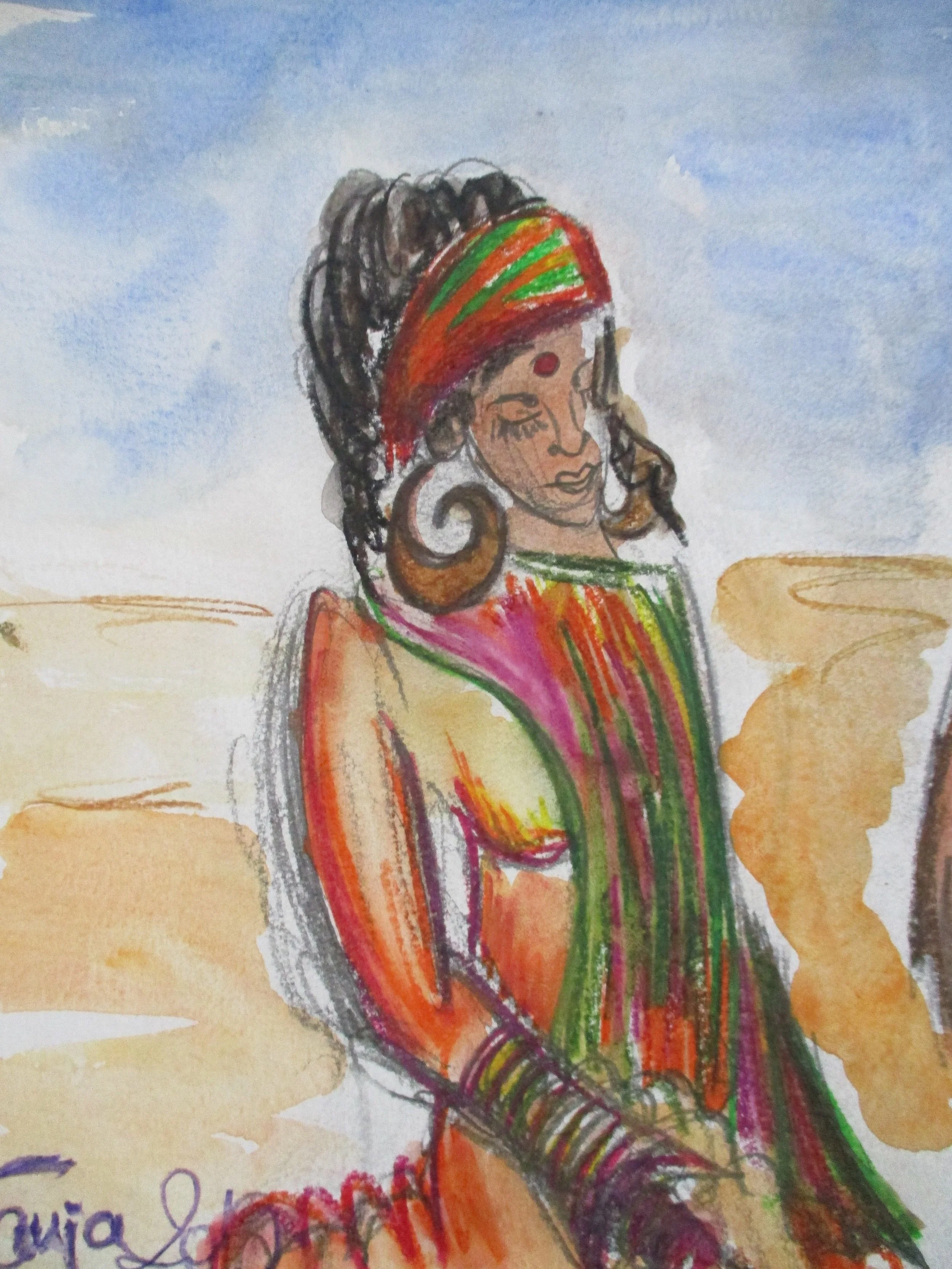 Inderin, die über ihr Leben nachdenkt und ein bisschen schmollt, 50 x 70 , PRIVATBESITZ