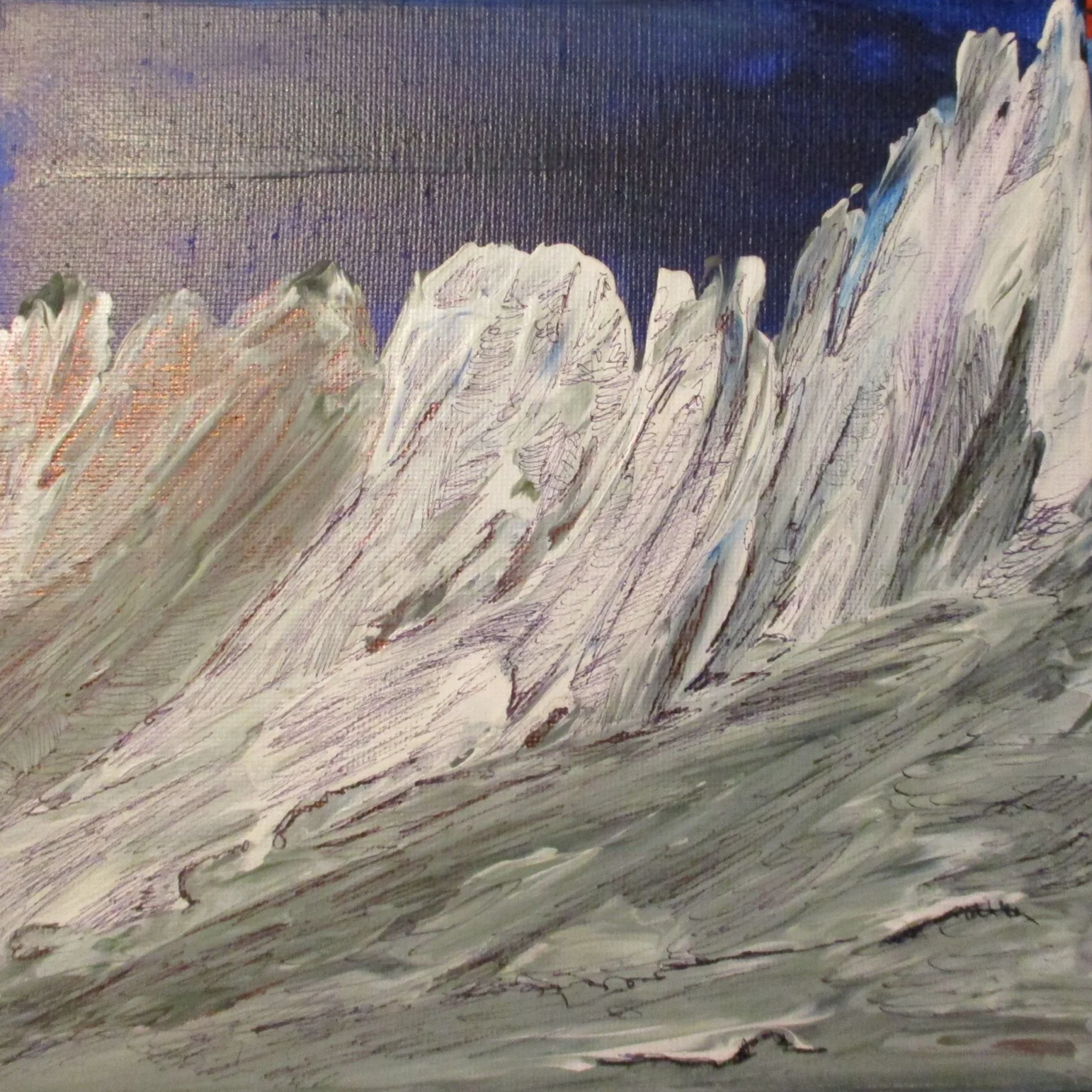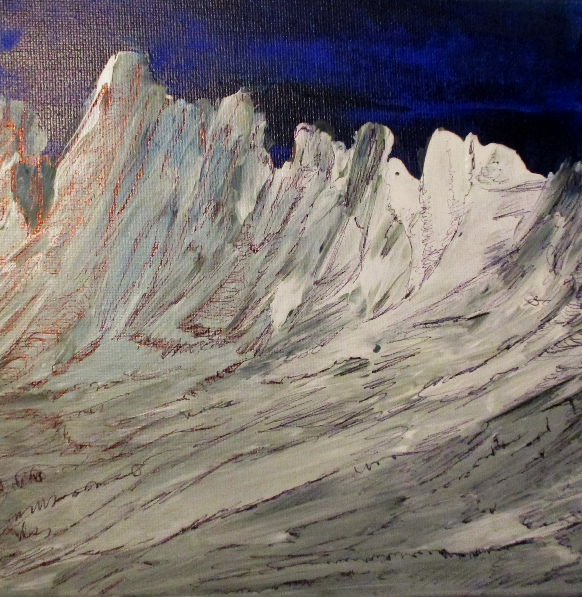 Eisblau, Acryl und Aquarell mit Kugelschreiber auf Leinwand , 70 x 100cm, VERKAUFT