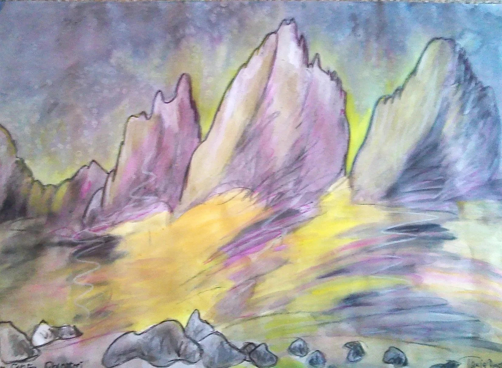 Drei Zinnen, 30 x 50cm, Wasserfarben und Fineliner auf Leinwandkarton, PRIVATBESITZ