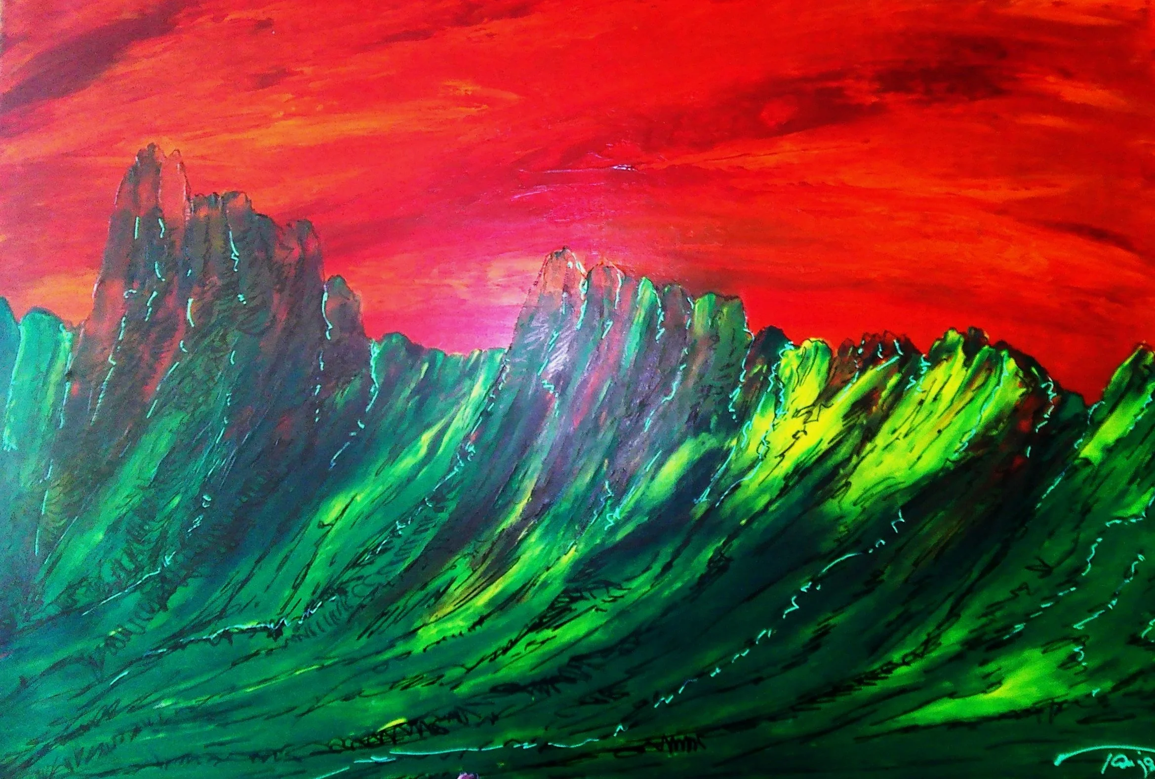 Brennende Dolomiten, Acryl auf Leinwand, 60 x 80 cm,
