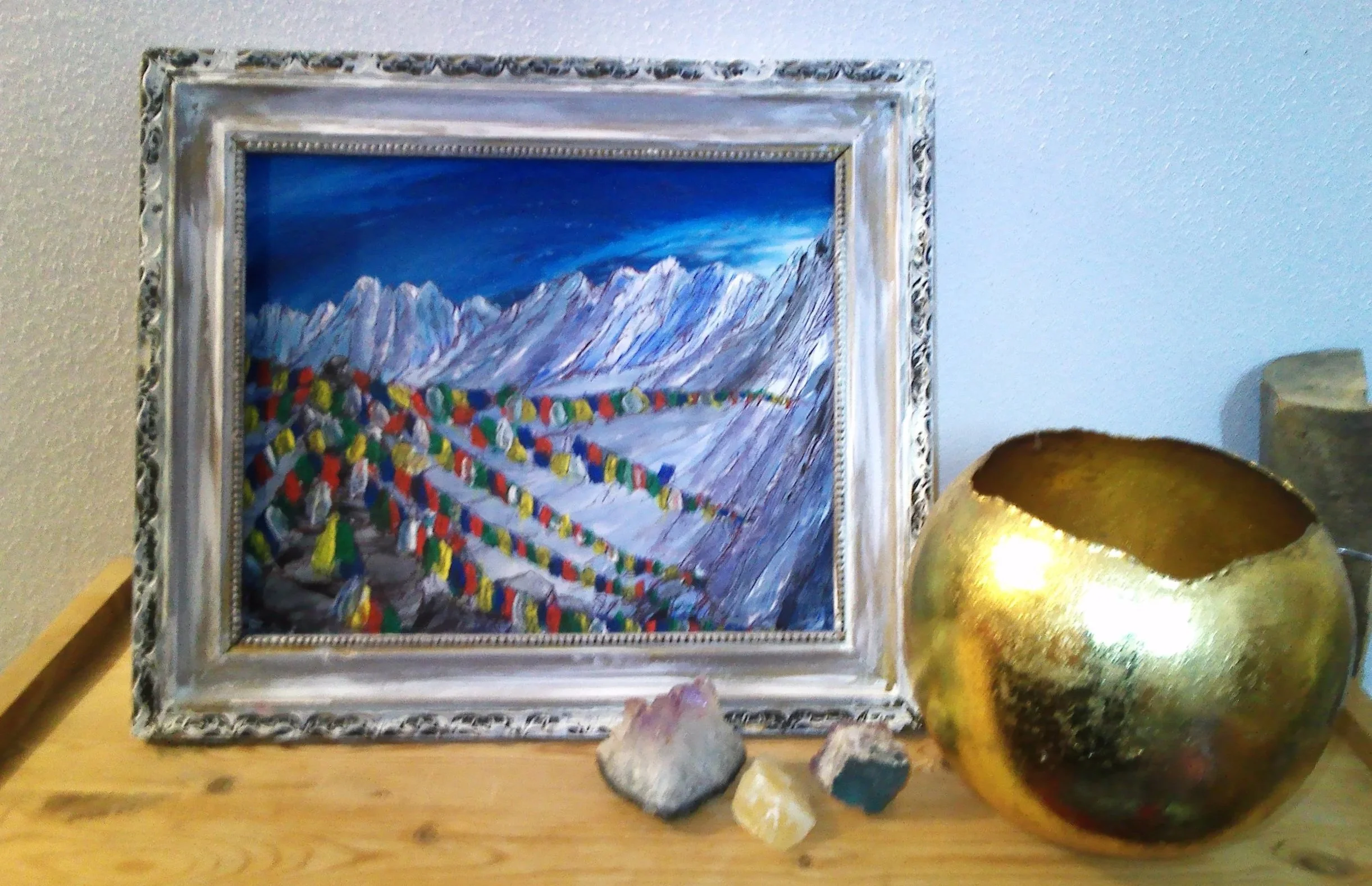 Himalaya, 90 x 120 cm, Acryl und Wasserfarben mit Fineliner auf Leinwand, 490,-