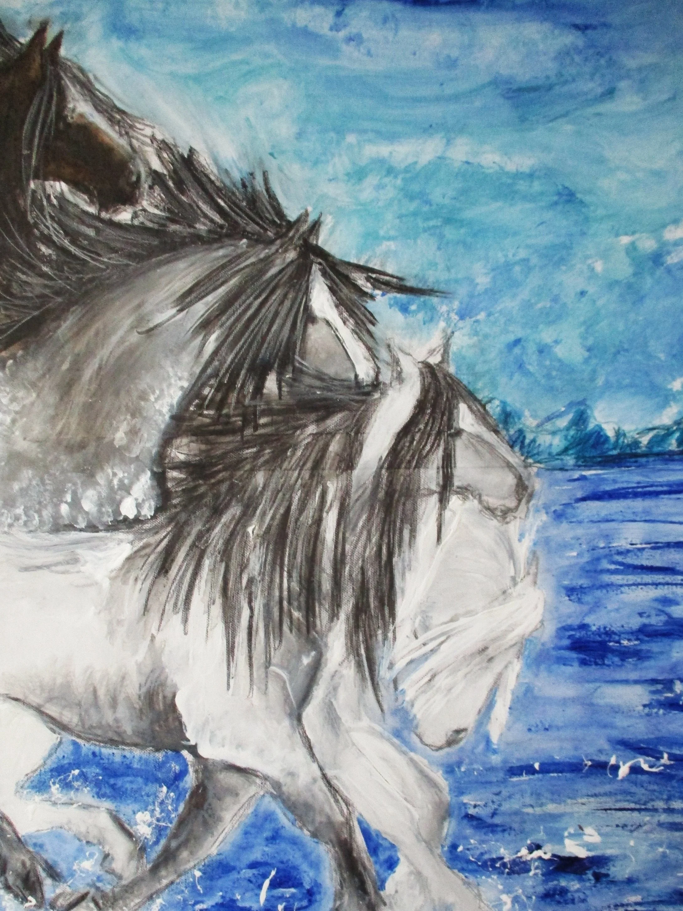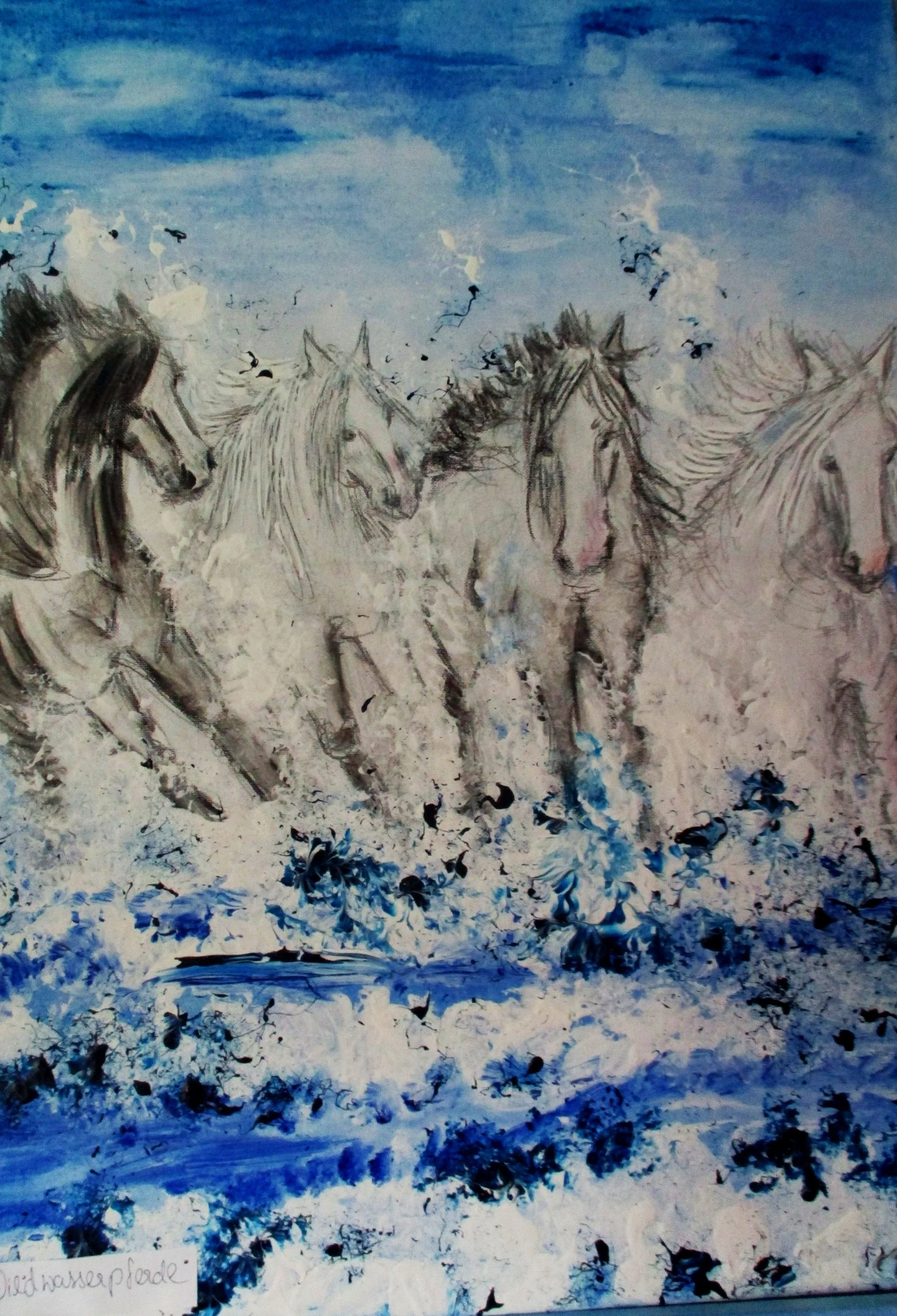Wasserpferde, Acryl auf Leinwand, 50 x 70 cm, 160,-