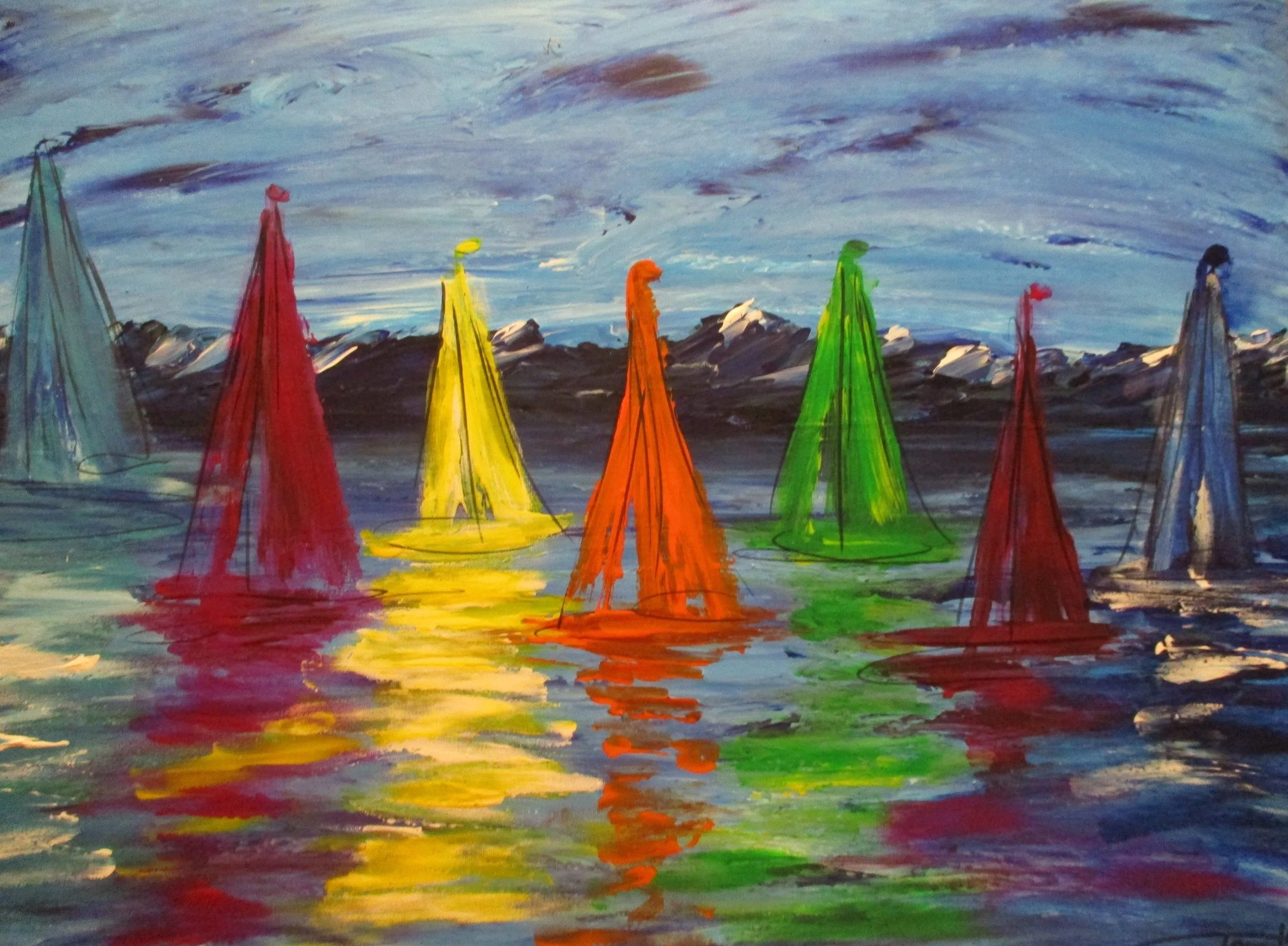 Bunte Segelboote am Chiemsee, 50 x 50 cm, Acryl auf Leinwand, 95, -.