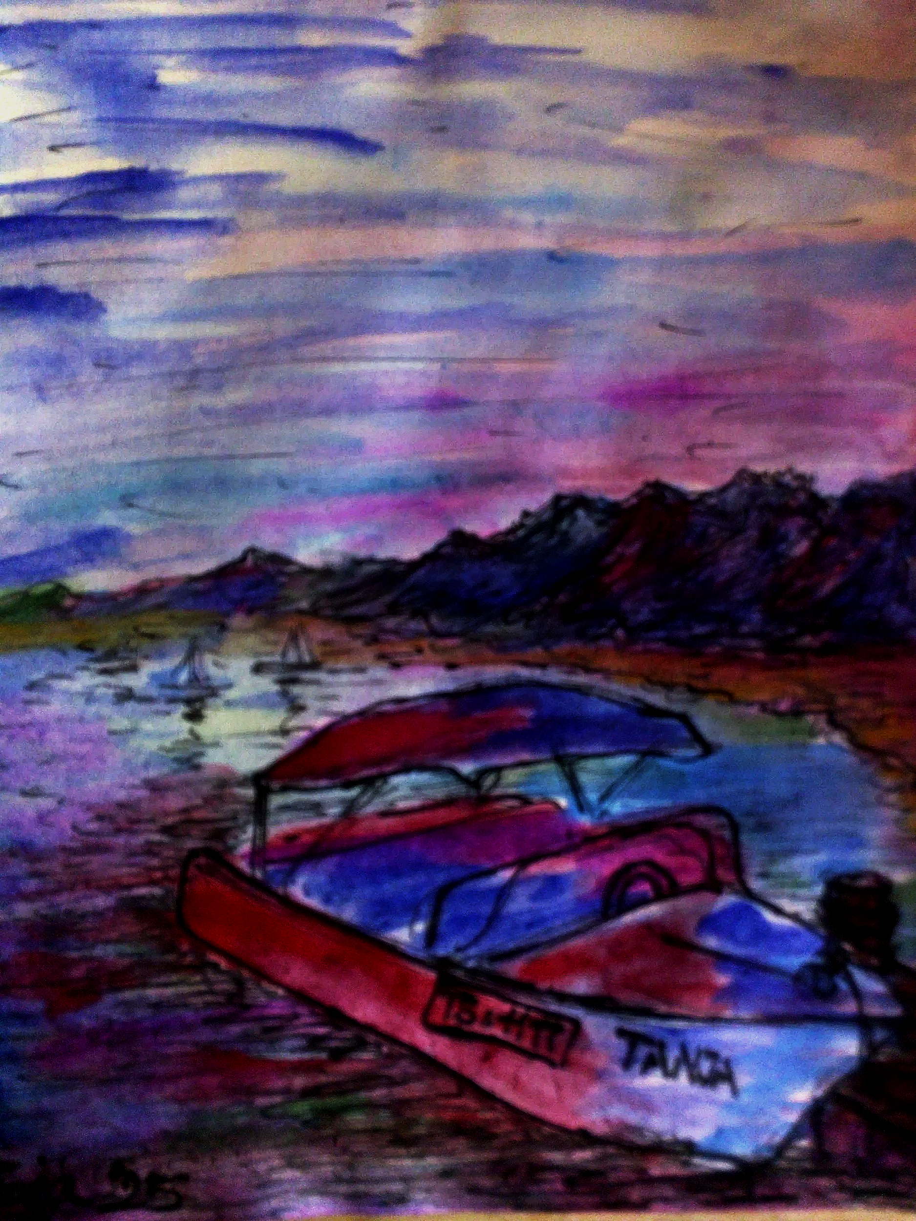 Boote bei Gstadt, 20 x 30 cm, Aquarell mit Tusche auf Aquarellpapier, 75,-