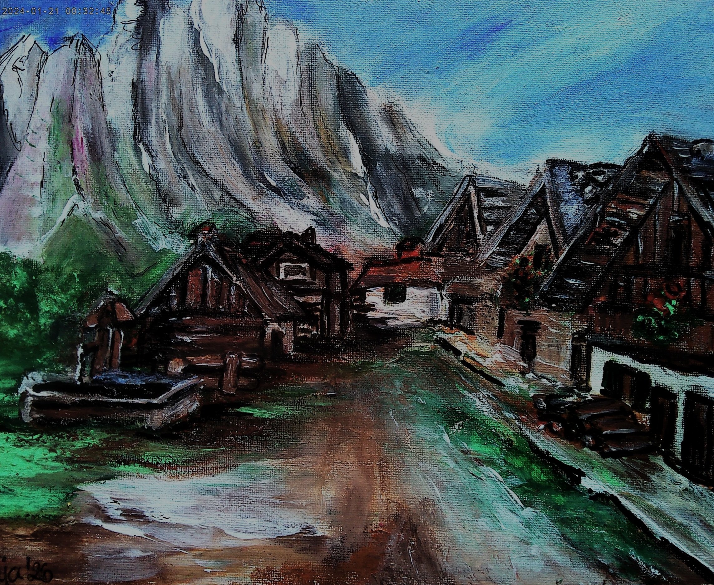 Berchtesgaden, Altstadt, 19,5 x 24,5 cm Innenmaß, 27,5 x 35 cm Außenmaß auf Aquarellpapier mit Passepartout, 95,-